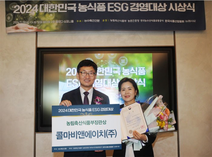 ▲ 콜마비앤에이치가 '2024 대한민국 농식품 ESG 경영대상'에서 농림축산식품부 장관상을 수상했다. (사진=콜마비앤에이치 제공) |