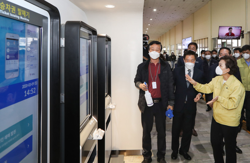 | ▲ 서울 서초구 고속버스터미널을 찾은 김현미 국토교통부 장관 (사진=뉴시스) |