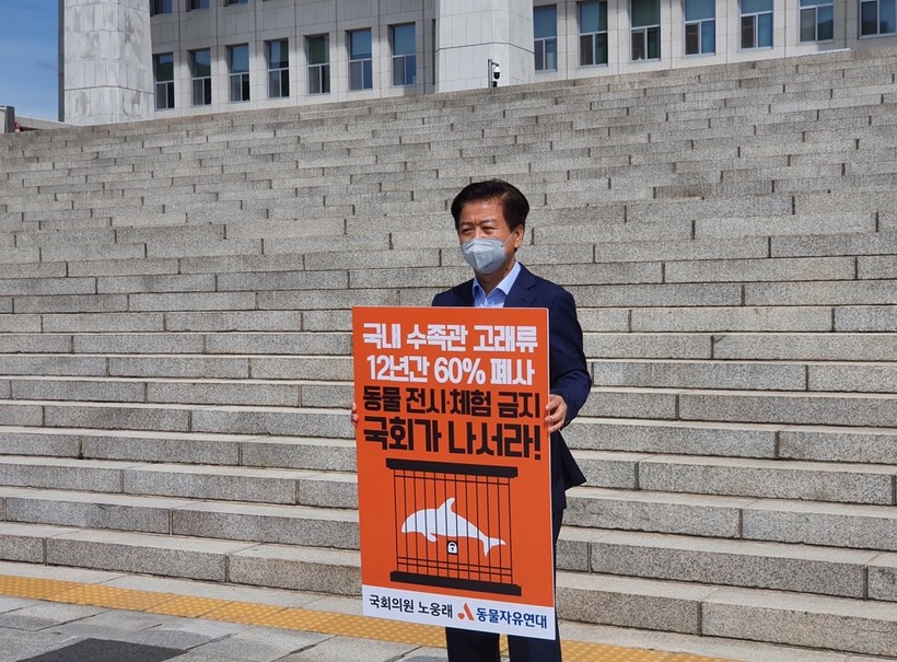 노 의원은 최근 발의한 동물원수족관법 개정안에는 ‘전시에 부적합한 돌고래 등의 도입을 금지하고, 이를 어기면 1년 이하의 징역이나 벌금형에 처한다’는 조항이 추가됐다. 체험 프로그램의 전면 금지와 수족관 등록제를 허가제로 전환하는 내용도 포함됐다.