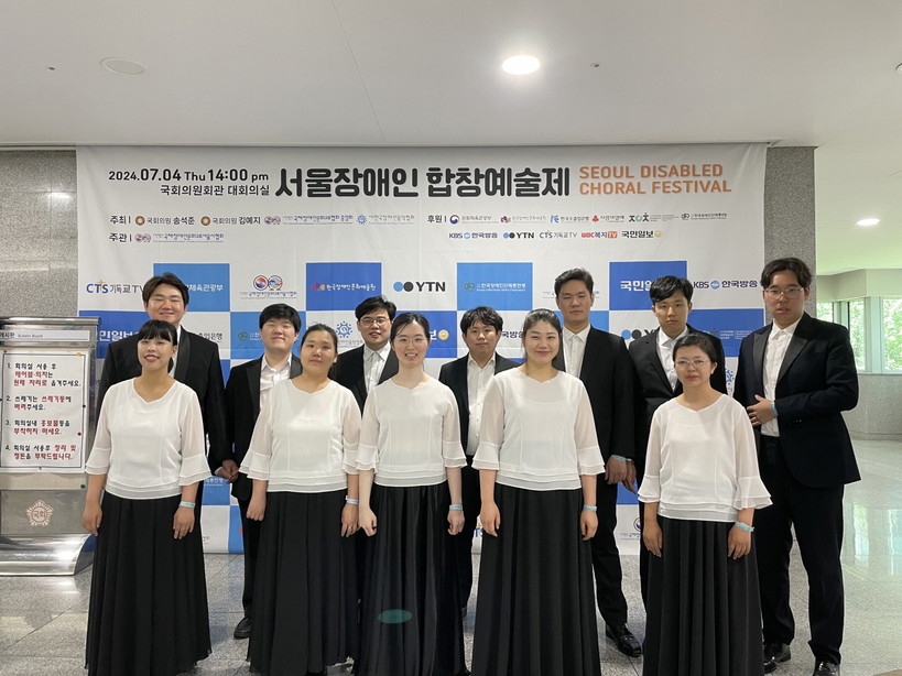 [일요주간 = 김성환 기자] 골프존뉴딘그룹(회장 김영찬)이 운영하는 국내 최초 장애인 직업 합창단 ‘골프존파스텔합창단’이 지난 4일 국회의원회관 대회의실에서 개최된 ‘2024 서울장애인합창예술제’에서 우승을 차지했다.