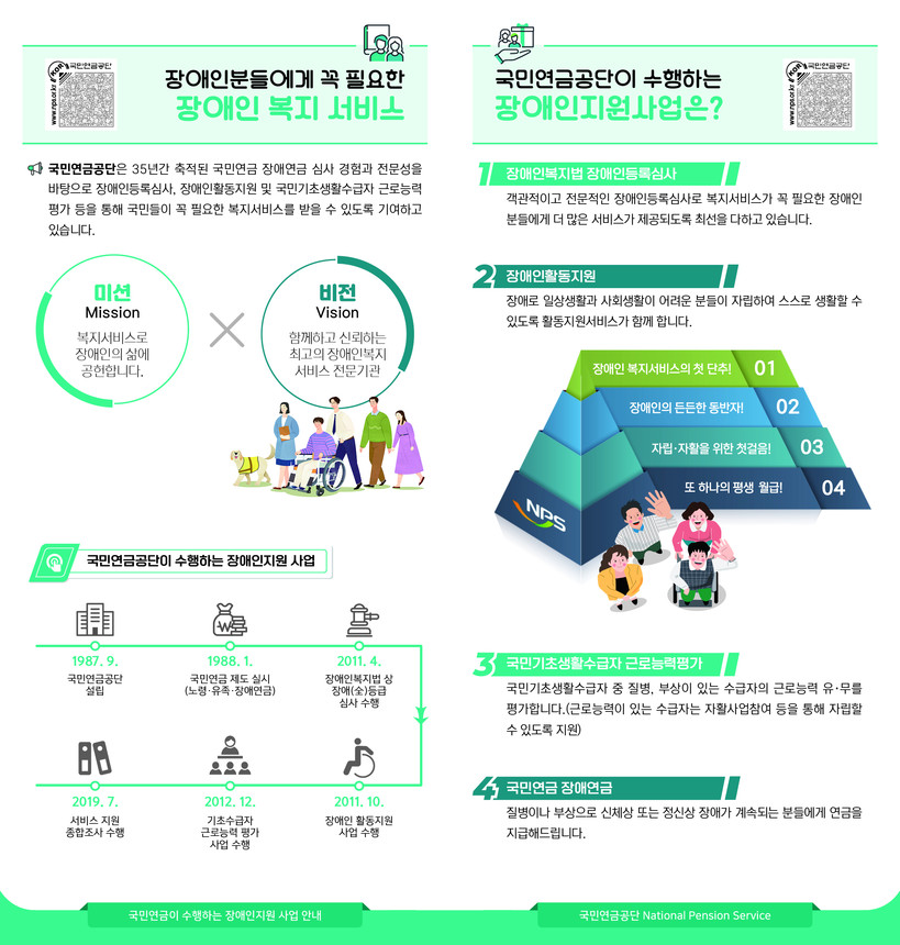 공단은 △장애인등록심사 △장애인활동지원 △국민기초생활수급자 근로능력평가 △국민연금 장애연금 등 네 가지 장애인지원사업을 수행하고 있다.