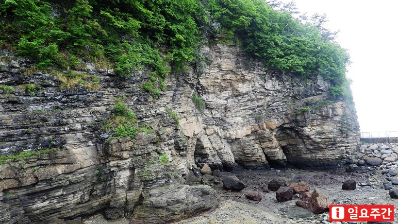 | ▲ 채석강의 모습은 수많은 책이 높다랗게 쌓여 있는 듯한 특이한 퇴적암의 아름다움으로 사람들의 감탄을 자아낸다. |