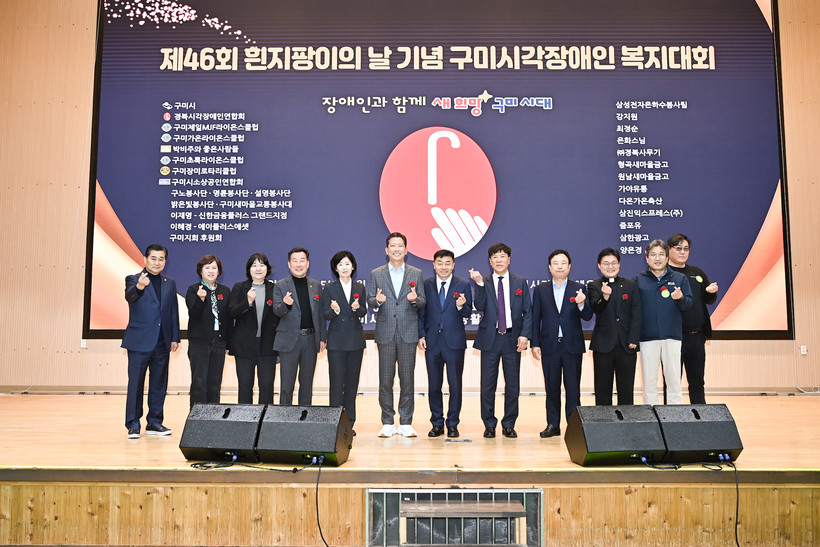 [일요주간=최부건 기자] 구미시는 10월 28일 구미시장애인체육관에서 (사)경북시각장애인연합회 구미지회(지회장 양성재) 주관으로 ‘제46회 흰지팡이의 날 기념 구미시각장애인복지대회’를 개최했다. 이번 행사에는 시각장애인과 자원봉사자, 내빈 등 300여 명이 참석하며 뜻깊은 시간을 함께했다.