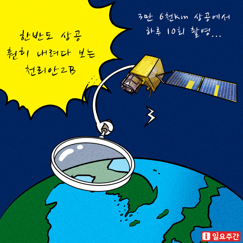 지구에서 3만6000km 떨어진 우주에서 한반도 주변을 관측하는 천리안2B는 지난 2월 19일 발사에 성공한 후 3월 6일 목표 궤도에 안착했다.