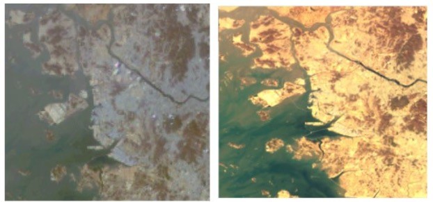 ▲ 왼쪽부터 천리안1호, 천리한 2B호가 촬영한 인천 부근 한반도 모습 (사진=과기정통부) |