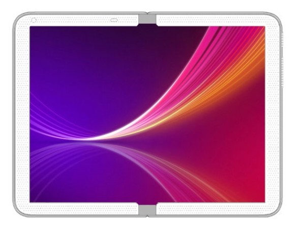 ▲ 세계지적재산권기구(WIPO)가 공개한 LG전자 특허 폴더블폰 폈을 때 모습 (사진=91모바일 홈페이지 캡쳐) |