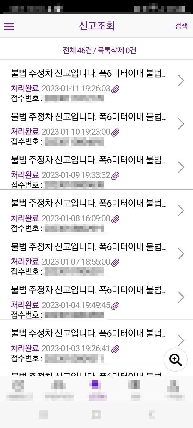 | ▲제보자 A 씨가 지난해 11월경부터 은평구청에 이면도로 불법주차와 관련해 수십차례에 걸쳐 민원을 제기했다.(사진=제보자 제공) |