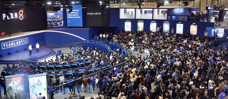 | ▲ 국내 최대 게임전시회인 '지스타 2019'가 개막한 14일 부산 해운대구 벡스코 행사장 내 한 게임업체 부스에서 신작 게임 발표회가 진행되고 있다. 총 30개국의 게임관련 업체 600여 곳이 참가했다.(사진=newsis) |