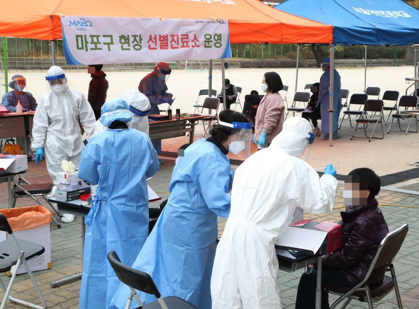 | ▲17일 오후 서울 마포구 창천초등학교에 신종 코로나바이러스 감염증(코로나19) 선별진료소가 설치되었고 학생 및 교직원 등 전수검사 실시 (이미지=뉴시스) |