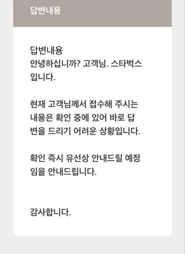 -스타벅스 고객 “제품 하자에 대해 클레임 제기했을뿐인데 왜 내가 이런 수모를” 울분