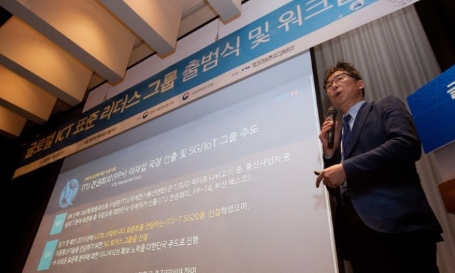| ▲ 김형준 한국전자통신연구원 본부장이 지난 5월 8일 서울 서초구 엘타워에서 열린 '글로벌 ICT 표준 리더스 그룹 출범식 및 워크숍'에 참석해 '4차산업혁명 주요기술 국제표준화 동향' 을 발표 하고 있는 모습.(사진=과학기술정보통신부 제공). |