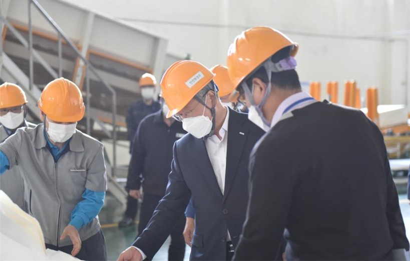 ▲ 반장식 조폐공사 사장(오른쪽 두 번째)이 현장 점검을 하고 있다.(사진=조폐공사) |