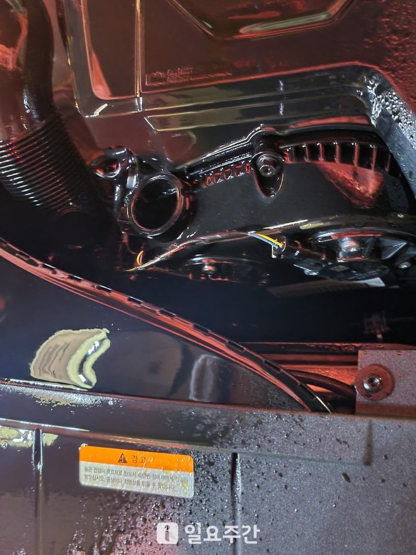 A 씨는 “주행 중에 차에서 타는 냄새가 나고 체크등이 디스플레이창에 보여 차를 도로 옆길에 세워 확인을 했다”며 “체크등이 주유구가 잘 안 잠겨 있을 때도 보이는 경우가 있어 확인했는데 아무 이상이 없어 본넷을 열었더니 연기와 함께 엔진룸 내부가 온통 엔진오일로 뒤범벅이 돼 있었다”고 당시 상황을 전했다.