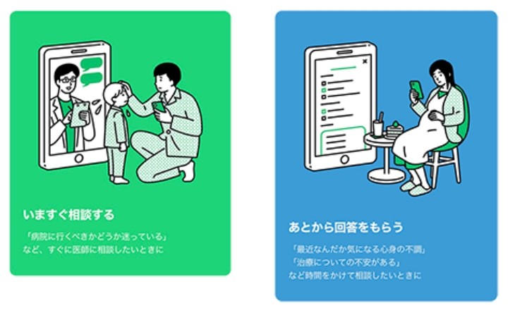 서비스는 두 종류로 제공된다. 이용자가 의료진과 채팅으로 실시간으로 상담할 수 있는 ‘지금 바로 상담’ 서비스는 30분당 2000엔(약 2만원)이다. 라인을 통해 의료진과 채팅을 통해 증상을 설명하고 거기에 따른 상담이 진행되는 형태로 시간대 비용으로 따지면 상당히 저렴한 편이다.