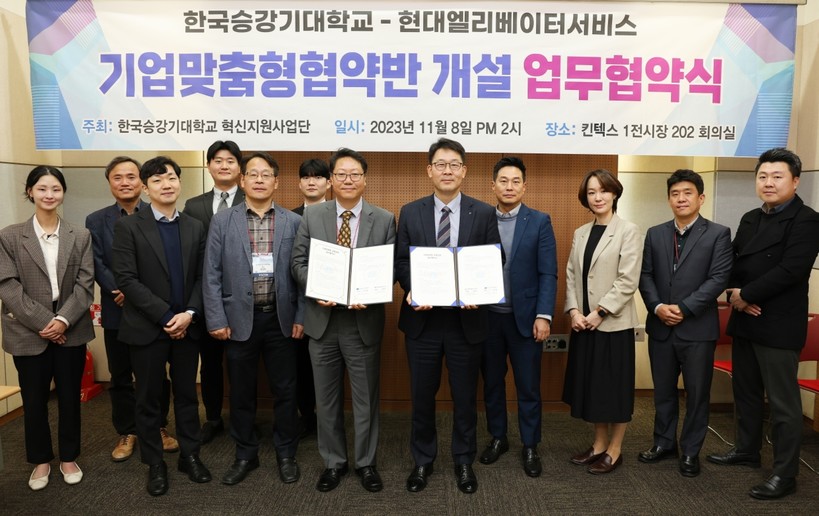 [일요주간=김영란 기자] 한국승강기대학교와 현대엘리베이터서비스가 양 기관의 산학협력과 인재 양성을 목표로 포괄적 업무 협약을 맺었다.