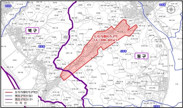 이에 따라 이 구역은 지정 기간 동안 일정규모 이상 토지거래를 할 때는 동구청장과 북구청장의 허가를 받아야 하며, 실수요자만 토지를 취득할 수 있다.