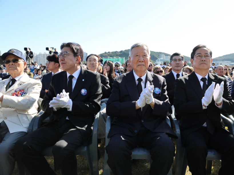| ▲ 이중근 대한노인회장 겸 부영그룹 회장(사진 오른쪽 앞줄에서 두 번째)이 '제19회 유엔 참전용사 국제 추모의 날' 기념식에 국민대표로 참석해 6·25전쟁에 참전한 유엔 참전용사들의 숭고한 헌신과 희생을 추모했다. (사진=부영그룹 제공) |