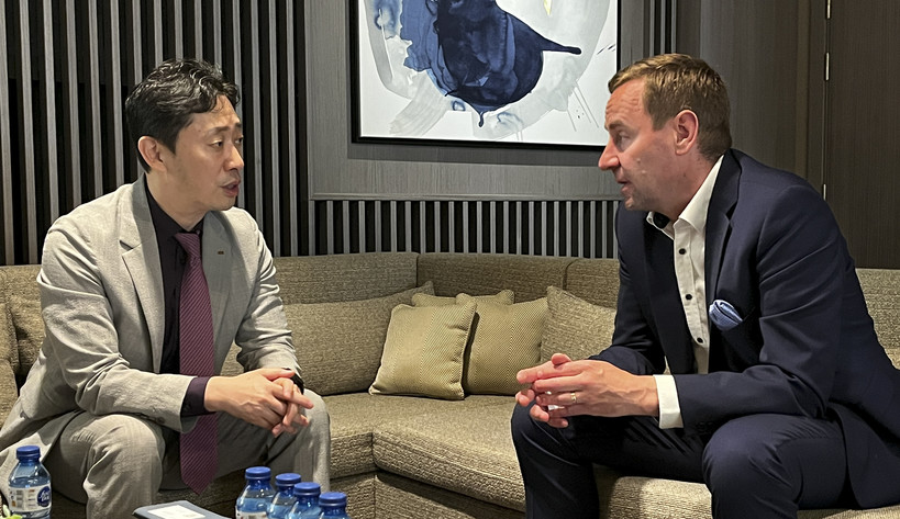 ▲ 윤형중 한국공항공사 사장(왼쪽)이 킴모 마키 핀란드 공항공사 CEO(오른쪽)와 부산-헬싱키 노선의 운항개시를 위한 협력방안을 논의하고 있다.(사진=한국공항공사) |