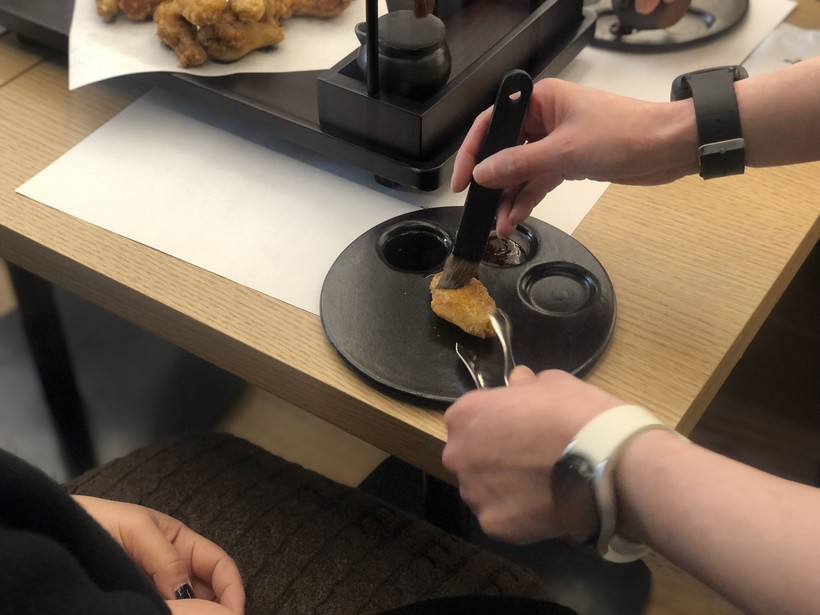 ▲ 구미 산업문화투어, 교촌치킨 1호점 탐방으로 더 풍성해진다_2025년 산업투어 교촌 1호점 양념 붓칠(사진=구미시) |
