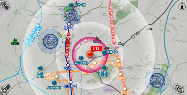 이번 의정부 금오동 프로젝트의 규모는 대지면적 8176㎡에 지하 2층에서 지상 16층까지 총 3개동 231가구가 들어설 예정이다. 특히 이번 사업지는 지하철 1호선 가능역과 의정부 경전철 동오역이 가까워 교통이 매우 편리하다. 또한 주변에는 동오초등학교, 금오중학교, 홈플러스, 을지대병원, 의정부백병원, 경기도청북부청사 등 다양한 생활 편의시설과 공공기관이 입점해 있다.