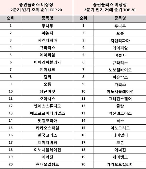 ▲ 증권플러스, 비상장 2분기 인기 조회·거래 종목 발표(이미지=두나무) |