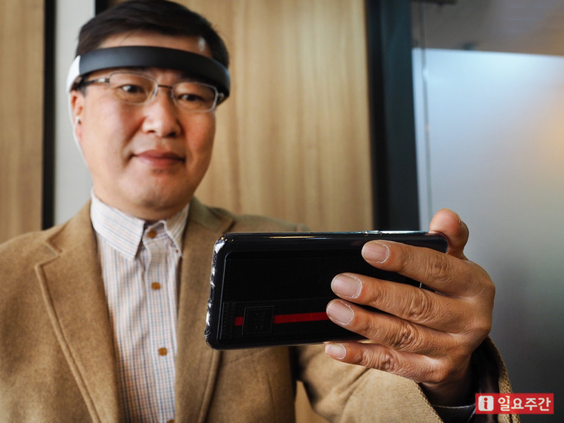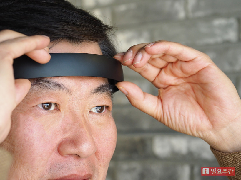▲헤드셋에 장착된 2채널 EEG 센서 (사진=지혜수 기자) |