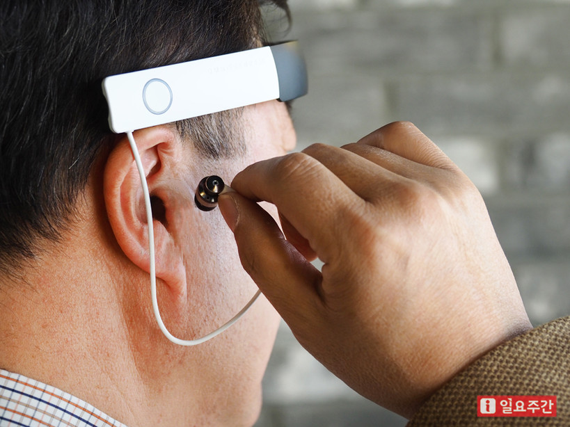 ▲옴니핏 브레인의 이어폰 착용 (사진=지혜수 기자) |