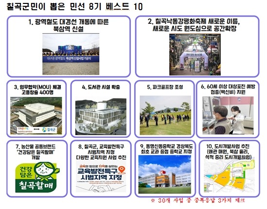 ▲ 칠곡군민이 뽑은 민선 8기 베스트 10 (이미지=칠곡군) |