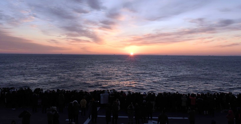 ▲ 독도함에서 새해 첫 일출을 관람하는 시민들 (사진=해군작전사)