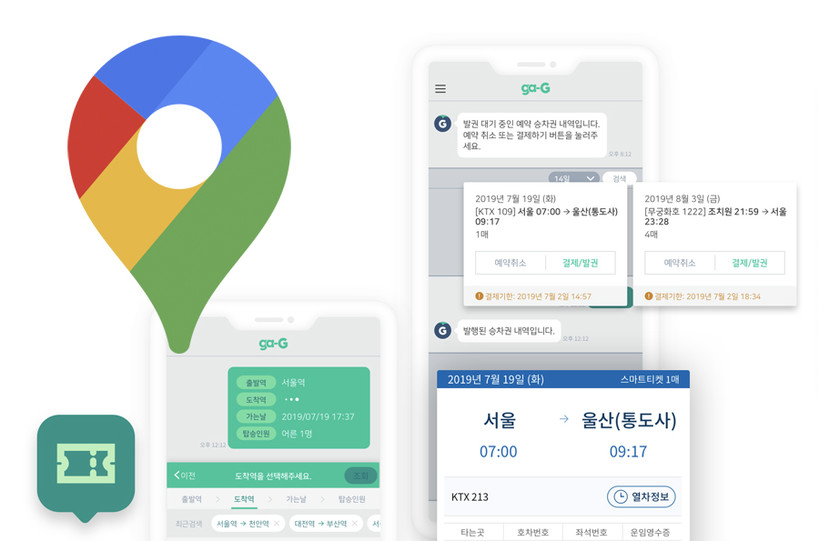 [일요주간 = 이수근 기자] 한국철도공사와 엔터플이 함께 운영하는 가지(ga-G) 서비스가 구글 지도의 경로 검색을 통해 사용가능한 ‘철도 승차권 구매 서비스’를 열었다.