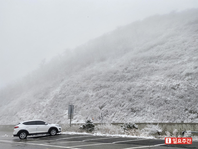 ▲한계령에 쏟아진 눈발 (사진=노현주 기자) |
