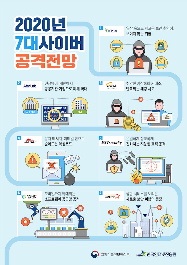 | ▲ 과기정통부와 KISA가 함께 제작한 2020년 7대 사이버공격전망 (이미지=KISA) |