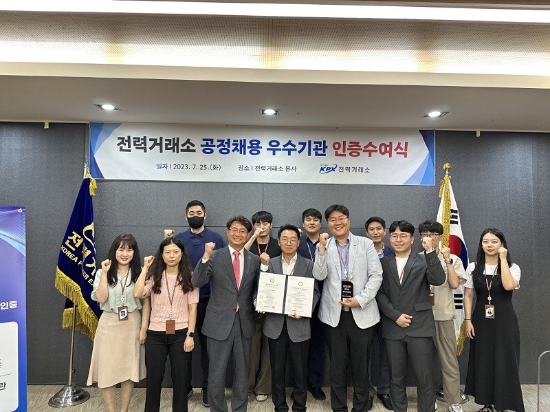 전력거래소는 금번 심사에서 기준점수를 훨씬 초과하는 높은 점수를 획득하여 2023년 공정채용 우수기관으로 최종 선정됐다.