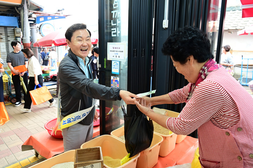 이번 캠페인은 장기화된 고물가와 저성장, 소비심리 위축 등으로 어려움을 겪고 있는 전통시장과 지역상가를 활성화하고, 지역 경기 회복을 도모하기 위해 마련됐다. 행사 참여자들은 온누리상품권 2,600여만 원을 구입해 제수용품과 생필품을 직접 구매하며 지역 상가에 실질적인 도움을 제공했다.