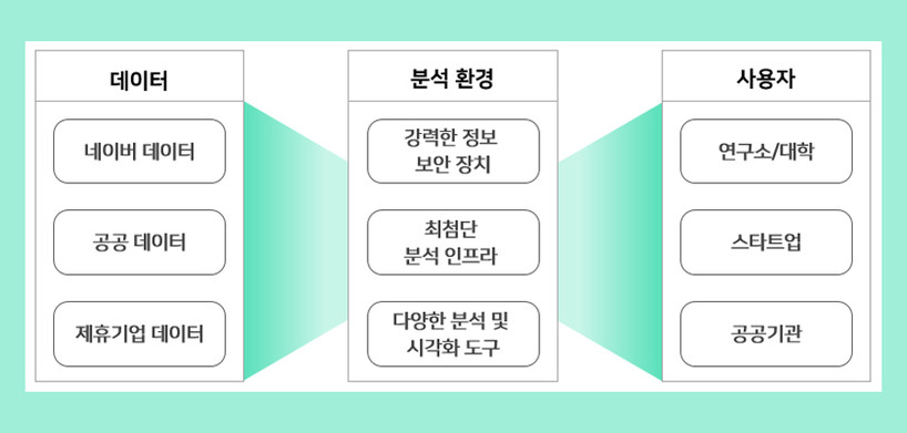 이 데이터 샌드박스를 통해 텍스트, 이미지 등 AI 학습용 데이터, 쇼핑, 지역, 검색 등 사용자 행동 데이터, 신사업 개발과 공익 연구를 위한 공공성 데이터 등 다양한 분야의 방대한 데이터를 제공한다.