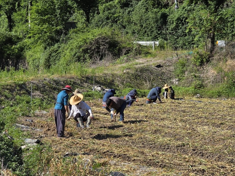 이날 환경사업소 직원 8명은 최근 인건비 상승과 고령화 등으로 노동력 확보에 어려움을 겪고 있는 농가에 도움이 되고자 마늘 수확에 구슬땀을 흘리며 작업을 진행하였다.
