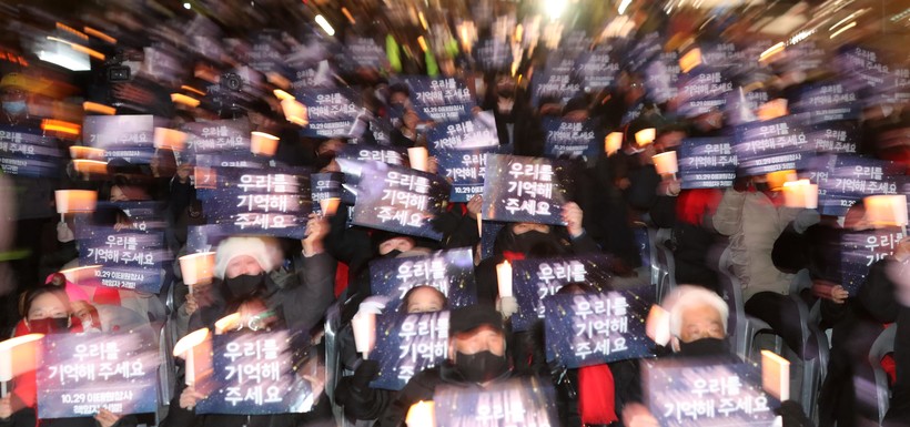 ▲ 서울 용산구 대통령실 인근에서 열린 10·29 이태원 참사 진상규명과 책임자 처벌을 위한 2차 시민추모제 모습. 사진=newsis