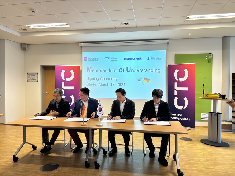 부산시는 독일 현지시각으로 지난 12일 오후 3시 독일 슈타데시에 위치한 Airbus CTC 본사에서 Airbus CTC, 대한항공, 부산테크노파크와 '부산 미래항공산업 육성 협력 업무협약'을 체결했다고 밝혔다.