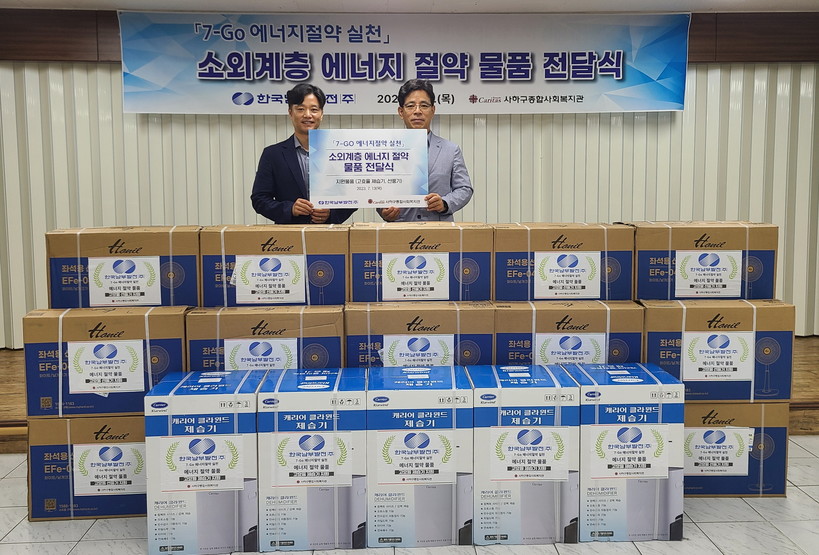 남부발전은 13일 부산 사하구 종합사회복지관에서 ‘소외계층 에너지 절약 물품 전달식’을 갖고 사하구 지역 무더위 사각지대에 놓인 어려운 이웃들에 고효율 제습기 25대 등 여름나기 물품을 전달했다고 밝혔다.