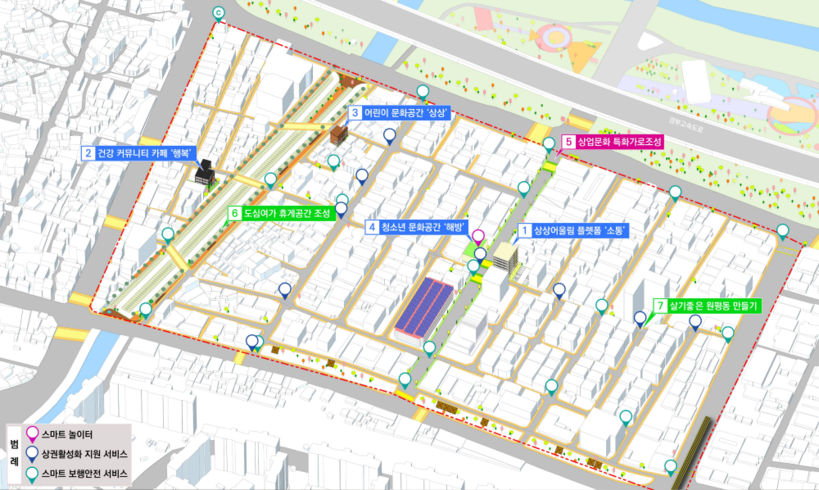 이번 사업의 주요 내용은 상권 활성화 서비스, 스마트 보행자 안전 서비스, 청년층을 위한 스마트 놀이공간 구축 등 총 세 가지다.