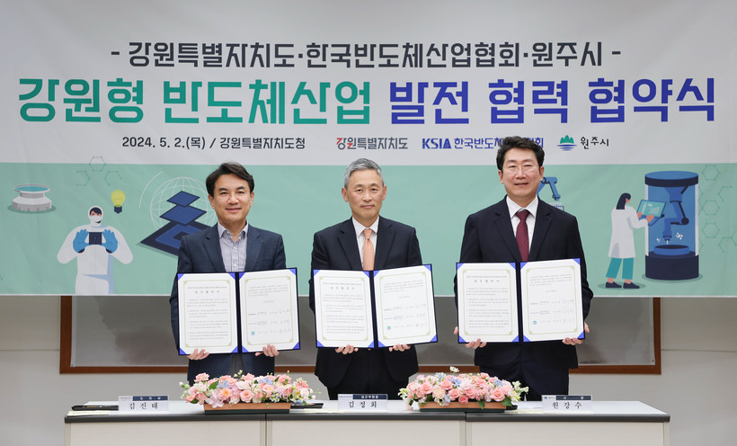[일요주간=김영란 기자] 강원특별자치도는 5월 2일(목) 도청에서 한국반도체산업협회 및 원주시와「강원-한국반도체산업협회-원주 반도체산업 발전 협력 협약식」을 개최했다.