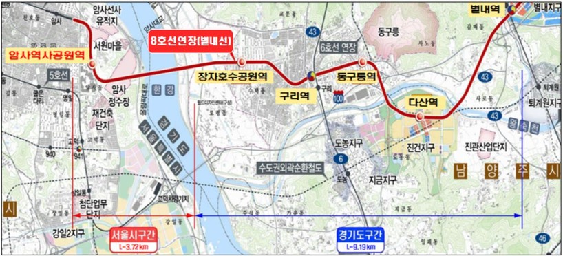 지하철 8호선 연장선이 개통되면 잠실역↔별내역을 27분 만에 이동할 수 있게 된다. 또한 2, 3, 5, 9호선, 수인분당선, 경의중앙선, 경춘선과 환승할 수 있어 수도권 동북부 지역 신도시(다산, 별내 등)에서 서울 접근성이 획기적으로 개선될 것으로 기대된다.