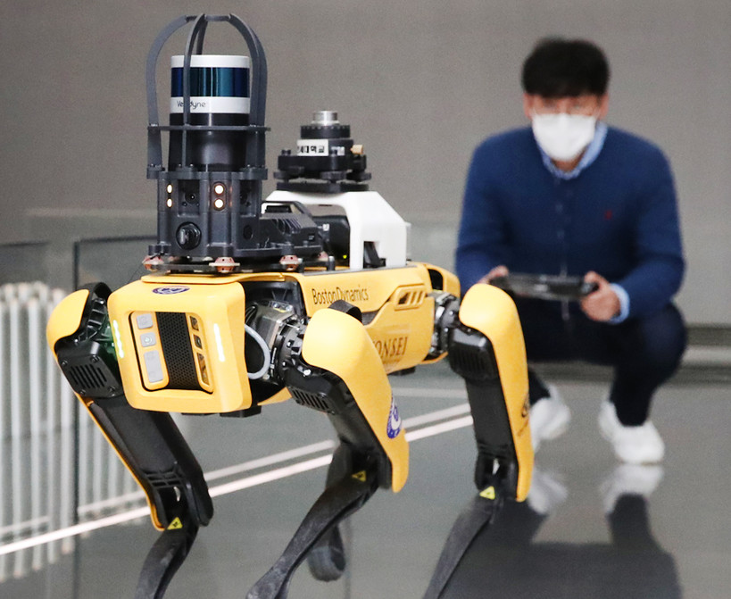 | ▲현대자동차그룹이 인수한 보스톤 다이내믹스 로봇개 '스팟'의 시연 장면 (이미지 편집=일요주간) |