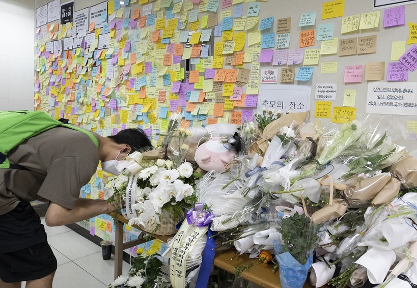 ▲ 신당역 사건 이후 여자화장실 앞에 마련된 추모공간. 사진=뉴시스 |