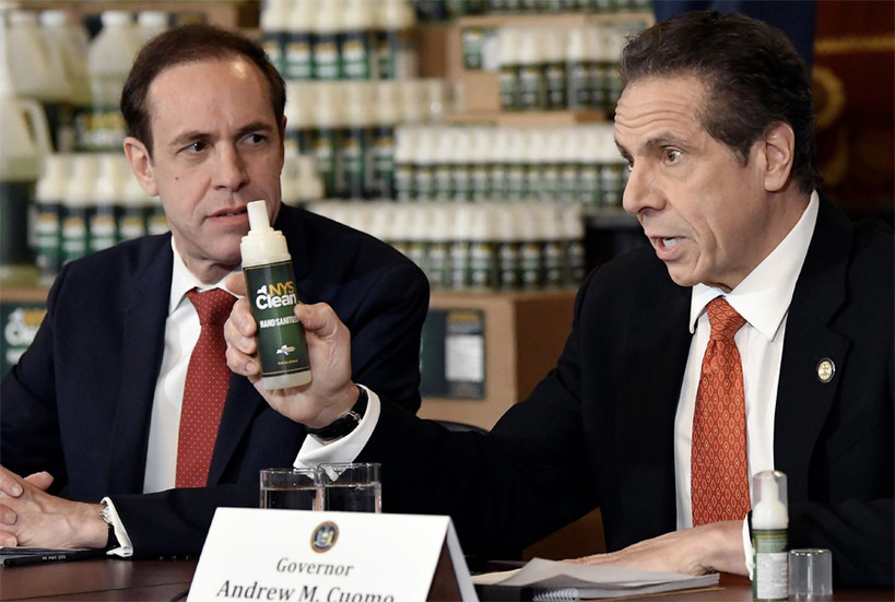 뉴욕 주지사 앤드류 쿠오모(Andrew M. Cuomo)는 뉴욕의 확진자수가 18만 명을 넘어서 빠른 속도로 퍼지자, 'NYS 클린' 캠페인을 벌이며 코로나19와의 싸움을 벌이는 중이다. 'NYS 클린' 캠페인의 일환으로 아이소프로필 알코올이 들어간 손세정제를 제작해 무료로 제공한다고 밝혔다.