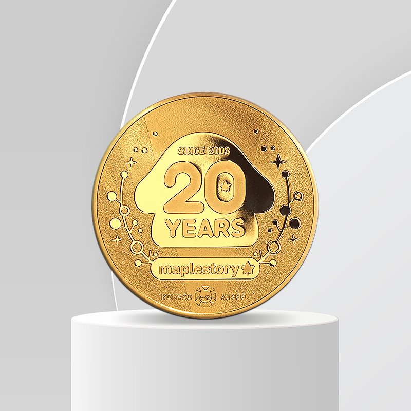 메이플스토리는 2003년 4월 정식 서비스를 시작하여 지난 20년 동안 폭넓은 유저층으로부터 사랑을 받은 세계 최초 횡스크롤방식 MMORPG(Massively Multiplayer Online Role-Playing Game, 대규모 다중 사용자 온라인 롤플레잉 게임)으로 기념메달로 제작되는 최초의 게임이다.