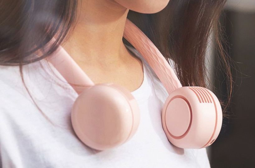 넥밴드 휴대용 선풍기는 지난 4월 클라우드 펀딩 사이트 와디즈를 통해 펀딩에 성공한 제품으로, 디자인과 성능 모두 유니크하다. 일단 일반적인 휴대용 선풍기처럼 손에 직접 들고 쓰지 않고 목에 걸어주는 타입이라 양손이 자유롭다. 또 디자인도 최신형 오버이어 헤드폰을 목에 건 듯한 느낌이라, 스타일을 중시하는 이들의 패션 아이템으로도 안성맞춤이다.
