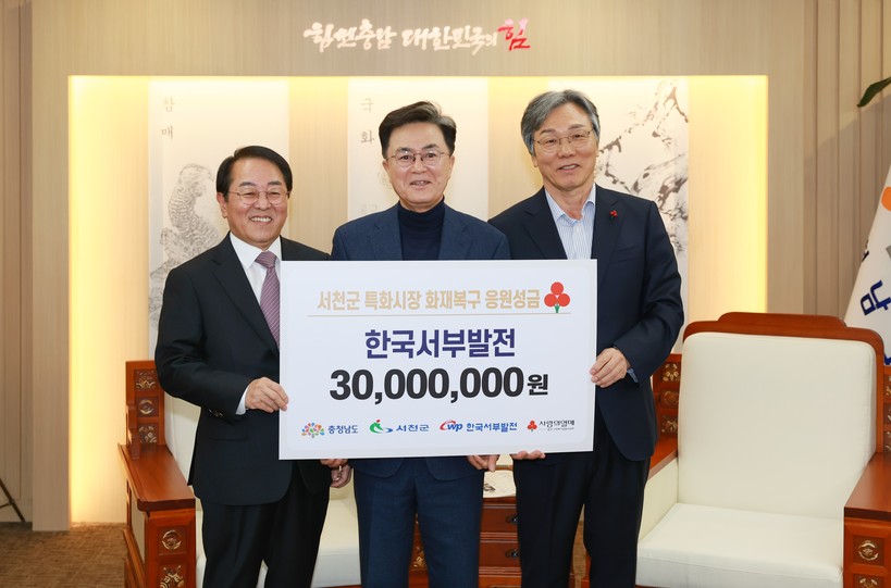 박형덕 서부발전 사장은 “이번 성금이 서천시장 상인들의 빠른 피해복구와 일상회복에 조금이나마 도움이 되기를 바란다”며 “상인들이 아픔을 이겨내고 빠르게 일어서길 기원한다”고 말했다.