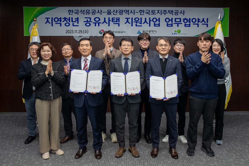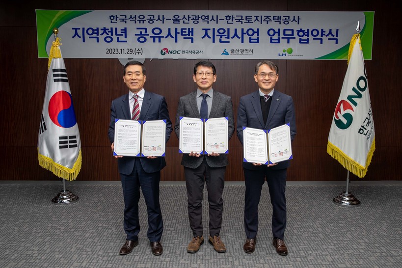[일요주간=김영란 기자] 한국석유공사(사장 김동섭)는 29일 울산광역시, 한국토지주택공사 부산울산지역본부와 지역청년 공유사택 지원 사업 추진을 위한 업무협약을 체결하였다고 밝혔다.