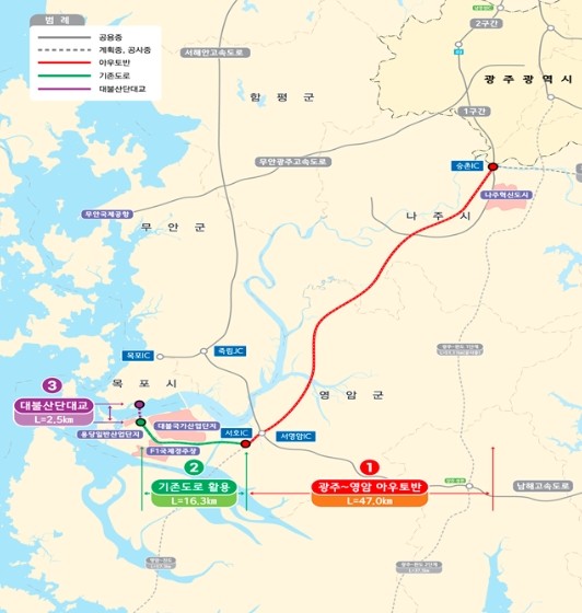 사업비는 광주~영암 초고속도로 2조 6천억 원, 대불산단대교 1천900억 원 등 총 2조 7천900억 원이 소요될 예정이다.